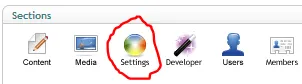 In the web browser go to the Umbraco administration portal. Select Settings from the Sections as shown in figure 2 below.