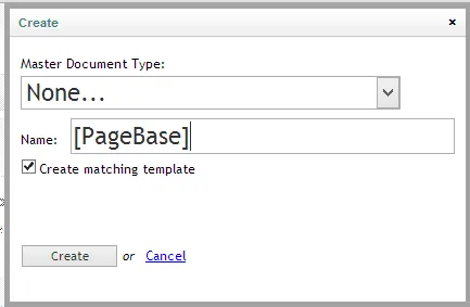 In the Create dialog provide the Name as [PageBase] and click Create to create the Document Template as well as a matching Template with the same name as shown in figure 4. The Template will be used as our Master Layout.