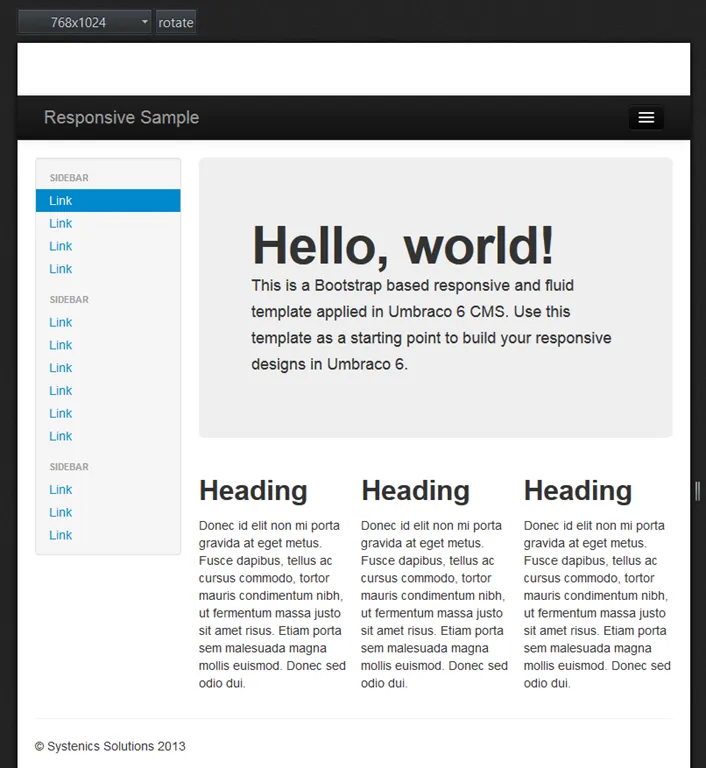 Building responsive, fluid HTML5/CSS3 based websites are a rage these days delivering the best ROI for clients investing in building new web sites. Building a single website which adapts itself depending on the device screen size gives end users richer experiences. There are several ways of building responsive websites, one of the popular ways to to use an existing framework like Bootstrap from Twitter which provide base scaffolding to quickly build responsive websites. In this blog post I am going to focus on how to integrate Twitter Bootstrap with Umbraco 6 and MVC/Razor display engine to build a HTML5/CSS3 based responsive website. The goal is to build a simple single page responsive website similar to the fluid bootstrap sample and focus on the integration part so that you can build more complex layouts as required. I plan to build upon this sample in future blog posts.